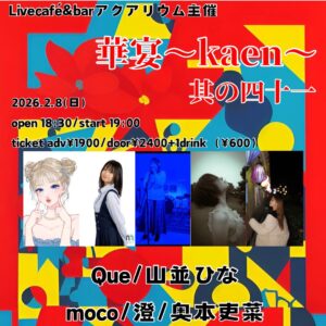 昨年の10月に続き、山並ひながLIVEで歌います!ライブハウスは天神のLive cafe&barアクアリウムです🏠 4曲歌いますので、どうぞお楽しみに✨ 日時:2026/2/8(日) 「華宴」 開場18:30 開 […]